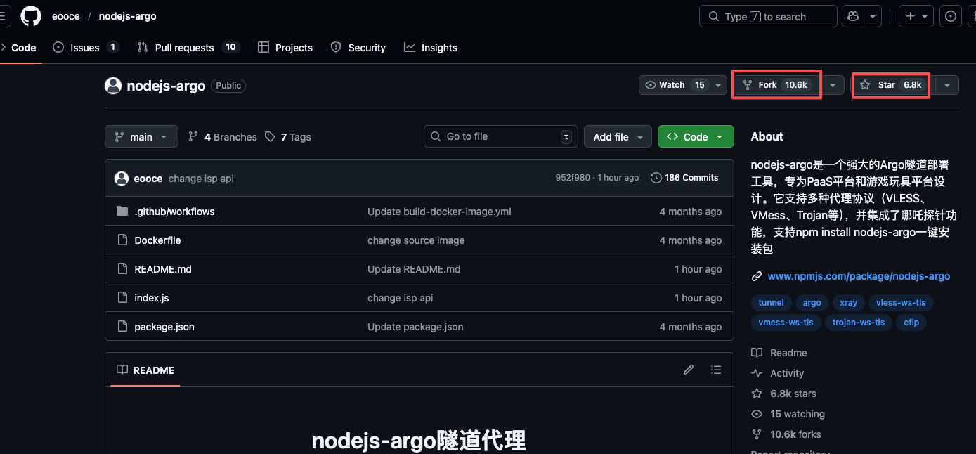 采用了 nodejs-argo作为基础镜像,在该地址将资源库fork到自有的资源库,先fork在点击一个star。