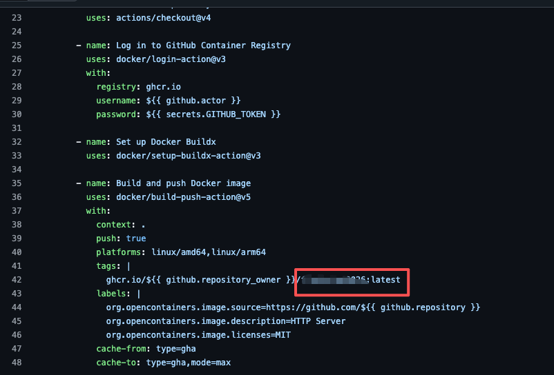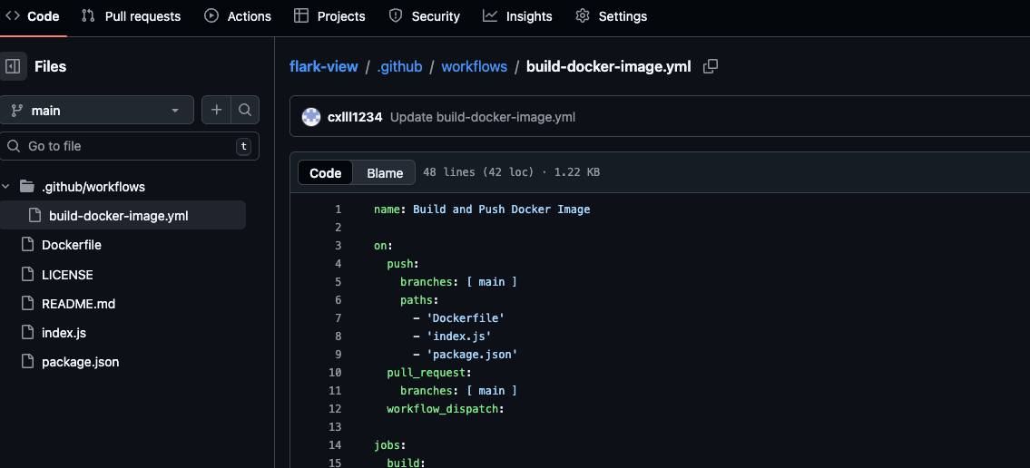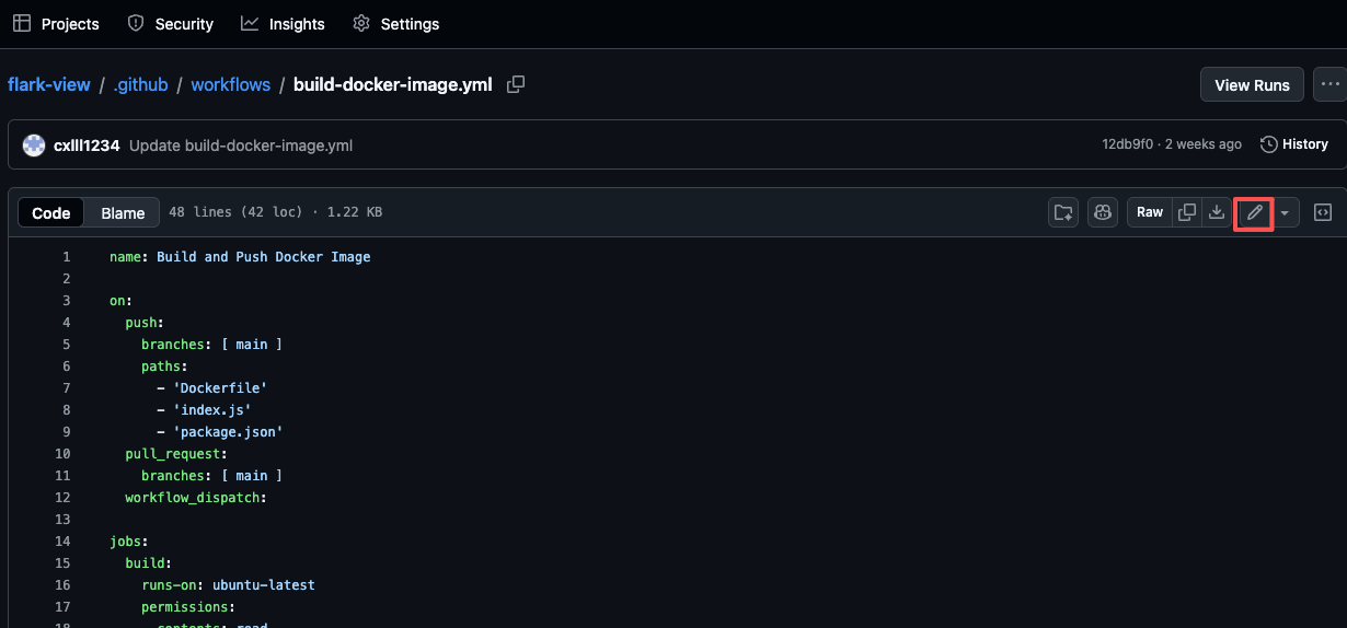 将资源库fork到自己的资源库后,修改docker的编译文件,进入资源库,打开.github/workflows/build-docker-image.yml文件。