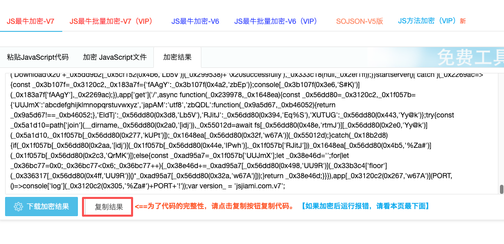 然后点击,JS混淆加密,加密完成后,点击复制结果。