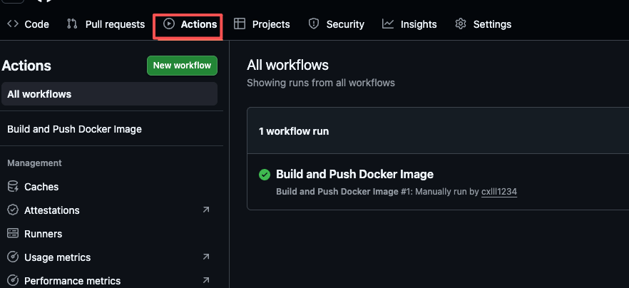 代码提交完成后,点击上方的Actions
