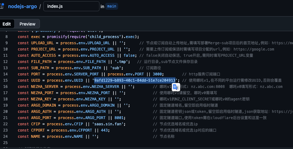 提交完成后,退回到首页,点击index.js,修改第十五行,修改一个你的uuid
