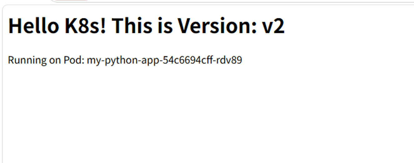 return f"<h1>Hello K8s! This is Version: v2</h1><p>Running on Pod: {hostname}</p>"