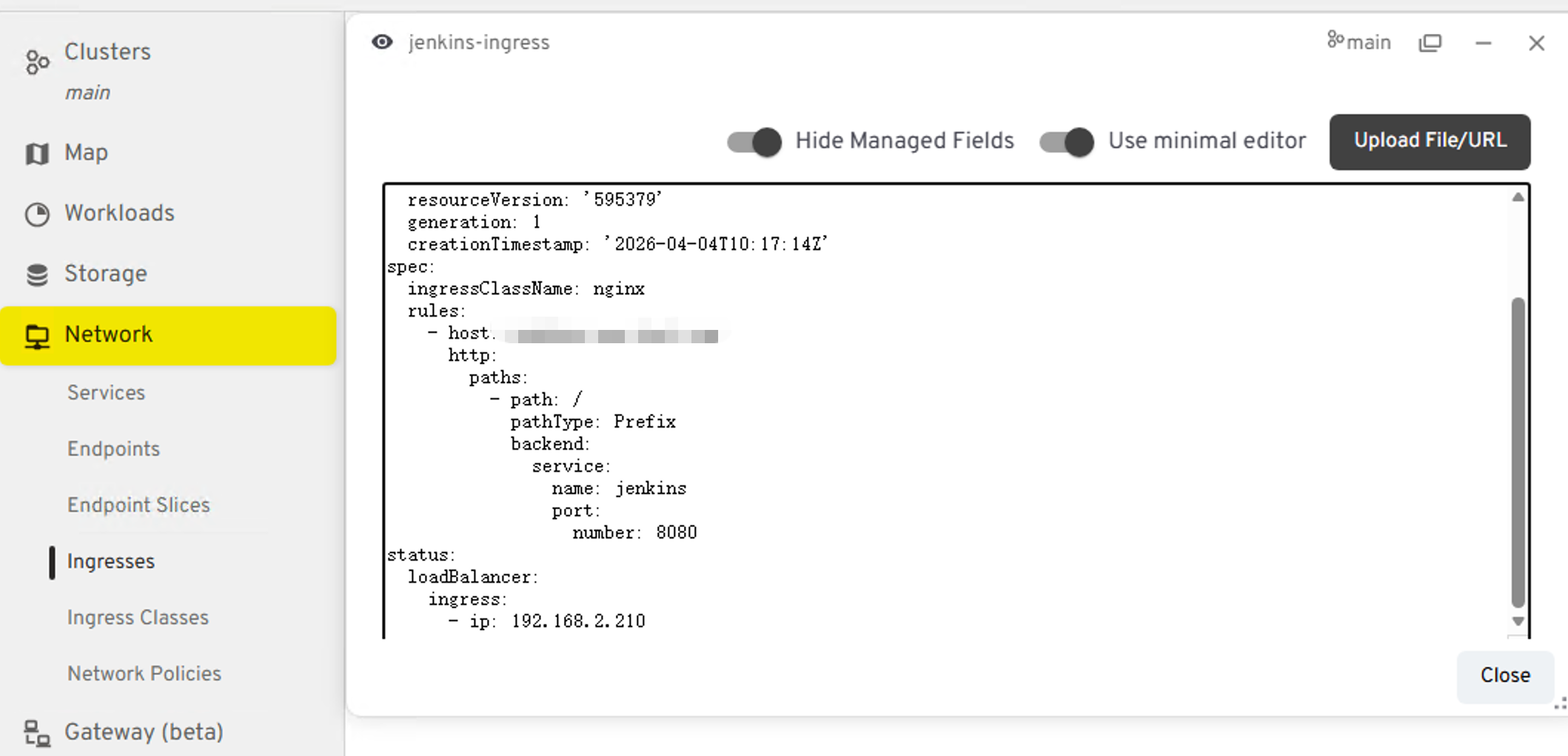在Ingress中输入如下yaml