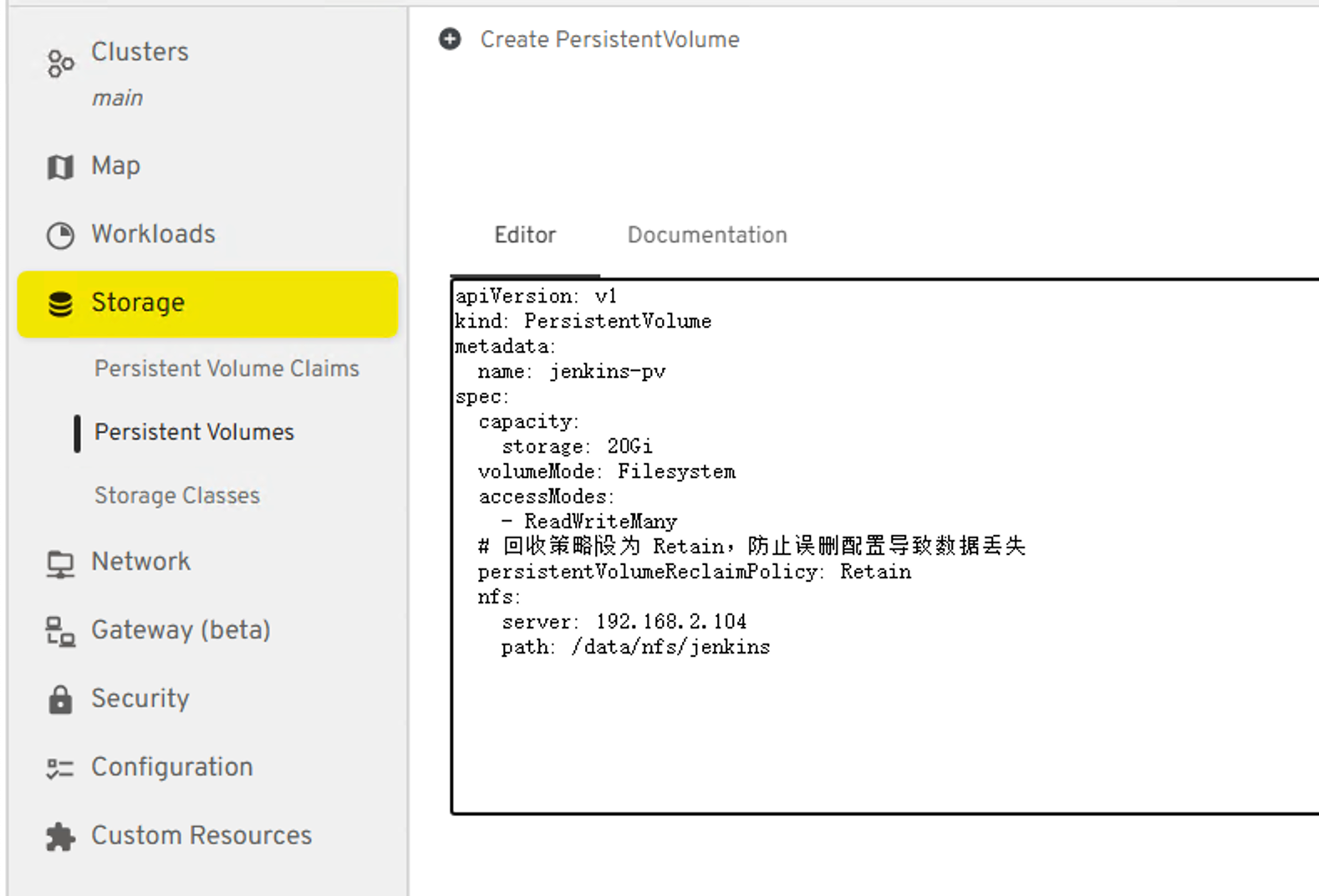 创建一个jenkins-pv的pv,将下列yaml填入并创建