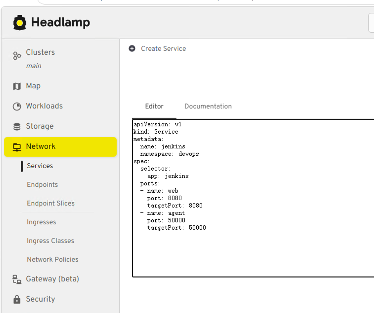 将下列yaml填入Service并创建
